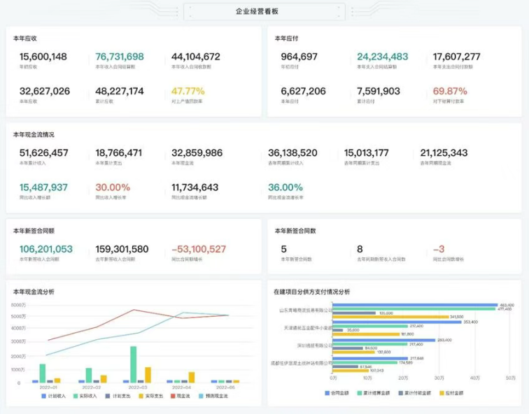 更關鍵的是 “數(shù)據(jù)穿透” 能力:管理層可以從總部層面,穿透到分子公司,再下鉆到具體項目,實時查看進度、成本、資金等維度的動態(tài) —— 比如總部能實時掌握所有項目的現(xiàn)金流情況,分子公司能監(jiān)控下轄項目的分供方付款進度,項目端能追溯每一筆成本的來源。這種 “總部 - 分子公司 - 項目” 三級透明化管理,不僅滿足了央企國企對 “運營透明度”“集團化管控” 的嚴格要求,還能為審計合規(guī)、重大決策提供可信的數(shù)據(jù)依據(jù),完美契合 “強總部、精項目” 的管理導向。
